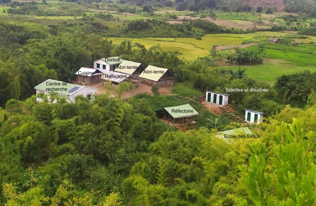 Le campement de Vohitrarivo occupe une place toute particulière dans l’histoire de notre programme. Créé en 2008, il fut notre tout premier campement destiné à accueillir les équipes travaillant sur le site. Après avoir été gravement endommagé par les cyclones de 2022, il a dû être entièrement déplacé et reconstruit sur le “Terrain des Simus”, une parcelle privée de 40 hectares que nous avons acquise en 2023 avec notre partenaire local IMPACT Madagascar. Ce terrain présente aujourd’hui un intérêt écologique majeur, puisqu’une partie des grands hapalémurs présents sur le secteur y a étendu son territoire.